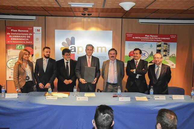 El consejero de Economía y Hacienda, Enrique Ossorio, y el presidente de la Asociación de Empresarios de Instalaciones Eléctricas y Telecomunicaciones de Madrid, Apiem, Ángel Bonet,...