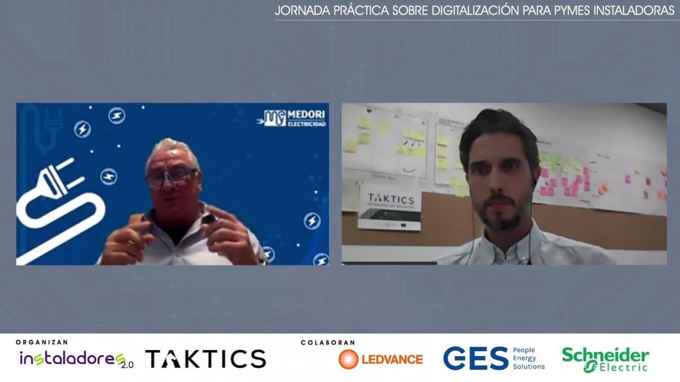 Tras una exposición inicial en la que desgranó esos 4 procesos y explicó cómo la digitalización de la empresa ayuda en tres factores decisivos para mejorar la “salud empresarial”: “elimina los números rojos, te libera de tu negocio y elimina el caos”, Mota conversó con Juanjo Medori, gerente de Medori Electricidad y protagonista de un reciente caso de éxito en la adaptación a procesos digitales en su empresa instaladora. Factores como “poder lograr un mejor control económico en tiempo real, con previsiones de cierre y gestión de almacén y personal; poder trabajar desde donde quieras, compartir la planificación y ofrecerte sistemas para delegar; o también la posibilidad de contar con partes digitales, reducir el papel pero incrementar la información o lograr un flujo de trabajo definido” se consideran mejoras esenciales en un proceso que fue desgranado con detalle durante algo más de una hora, con la ayuda en la parte del debate de Jesús Requena, director de marketing y desarrollo de negocio de la División Home & Distribution de Schneider Electric; Iñaki Aramburu, director de marketing de GES; y Alfonso Canorea, director comercial de Ledvance España.