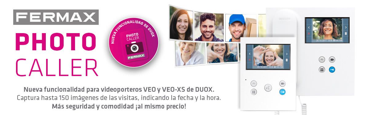 Fermax sigue apostando por la tecnología Duox, y tras el éxito de los monitores Veo y Veo-XS, desde finales de 2017, ha incluido en ambos terminales la función Photocaller, que permite capturar automáticamente una instantánea de quien ha llamado a la vivienda y almacena la imagen indicando el día y la hora de la visita. Un extra habitual de monitores de alta gama que puede ser incorporado en aquellos modelo de precio básico sin incremento de precio.