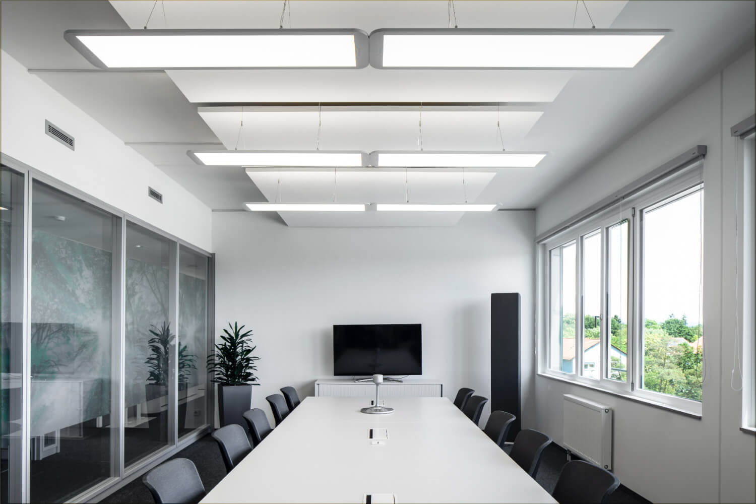 Las nuevas luminarias debían montarse entre los paneles del techo para integrarlas en el diseño de iluminación. Además, Siemens buscaba luminarias con sensores de movimiento y luz, y que proyectaran una luz uniforme que diese luminosidad a la estancia. Otra de las razones para elegir este modelo es su elevado nivel de confort lumínico, que proporciona una combinación perfecta de luz directa (70 %) e indirecta (30 %), su bajo índice de deslumbramiento (UGR<19) y bajos costes operativos y de mantenimiento. También que los sensores de movimiento y la detección de luz diurna estuvieran integrados en la luminaria porque, independientemente del sistema de gestión del edificio, se desconectan de forma automática si no hay movimiento en las salas.