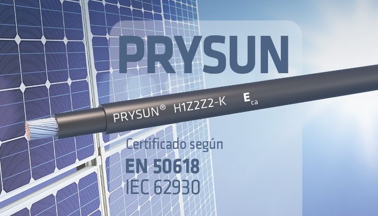 Para responder a las exigencias de las instalaciones fotovoltaicas tanto por su variedad como por su exposición ambiental (estáticas, móviles, domésticas, industriales, para vertido en red, etc.) Prysun® supera un amplio abanico de ensayos eléctricos, mecánicos, químicos, de reacción al fuego y medioambientales. Entre sus principales características destaca una tensión asignada de 1/1 kVac; 1,5/1,5 kVdc; tensión máxima de servicio 1,2/1,2 kVac; 1,8/1,8 kVdc y una longevidad estimada de 30 años. Con doble aislamiento (clase II) y temperatura máxima en el conductor de 90ºC (120 ºC durante 20 000 h), es un cable no propagador de la llama, libre de halógenos y de baja emisión de humos, resistencia al ozono, a los rayos UVA, al doblado a baja temperatura, al impacto en frío, al calor húmedo, a la contracción de cubierta y a la penetración dinámica