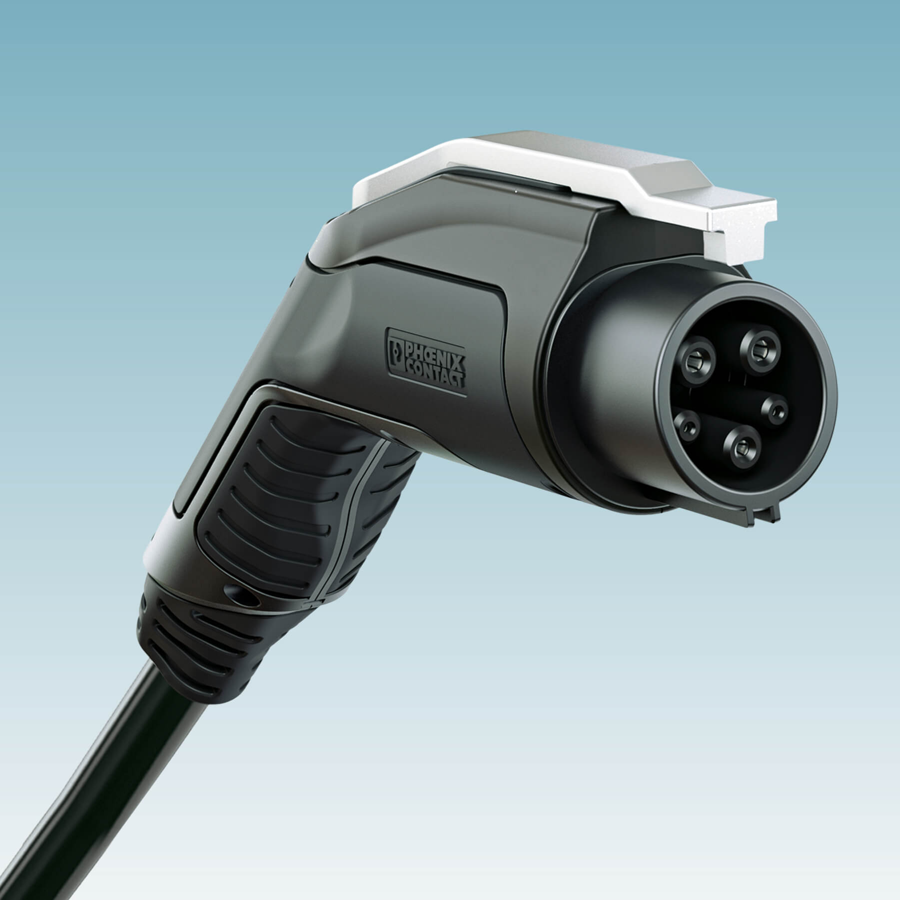 Mientras que en el estándar de carga de tipo 2 europeo pueden alcanzarse potencias de carga superiores utilizando tres fases, por lo general, en América del Norte solo se dispone de una red monofásica. Con ello, la única posibilidad de obtener una potencia de carga apta para la práctica es aumentando la intensidad de corriente. Los conductores de señales integrados en el cable de carga permiten a la estación de carga acceder a la señal CS del conector de carga, con lo cual este puede detectar el estado de accionamiento de la palanca de bloqueo. Los conectores de carga se suministran con y sin el logotipo de Phoenix Contact. Los conectores de carga también están disponibles con un logotipo a medida.