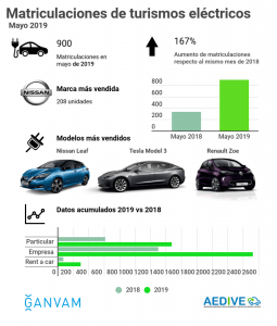 Por otro lado, los turismos eléctricos registraron un total de 900 matriculaciones en el mes de mayo, lo que supone un incremento del 167% respecto al mismo mes del año anterior. Así, en el acumulado del año, se matricularon 4.285 turismos eléctricos puros y este mercado anota un crecimiento superior al 117%, según datos consensuados entre Aedive y Ganvam.
